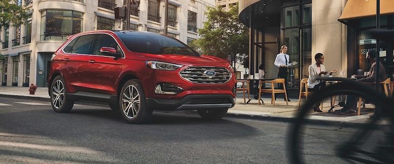 The overall craftsmanship and attention to detail can be seen both inside and out of Edge Titanium. The interior features a standard leather-wrapped steering wheel and perforated leather-trimmed sport bucket seats. Other smart touches include standard metal-plated accents, mechanical stripe aluminum appliqué, illuminated scuff plates and ambient lighting. The exterior design features a bright beltline molding matched with chrome accents and standard 19-inch wheels. Also available are 20-inch wheels.