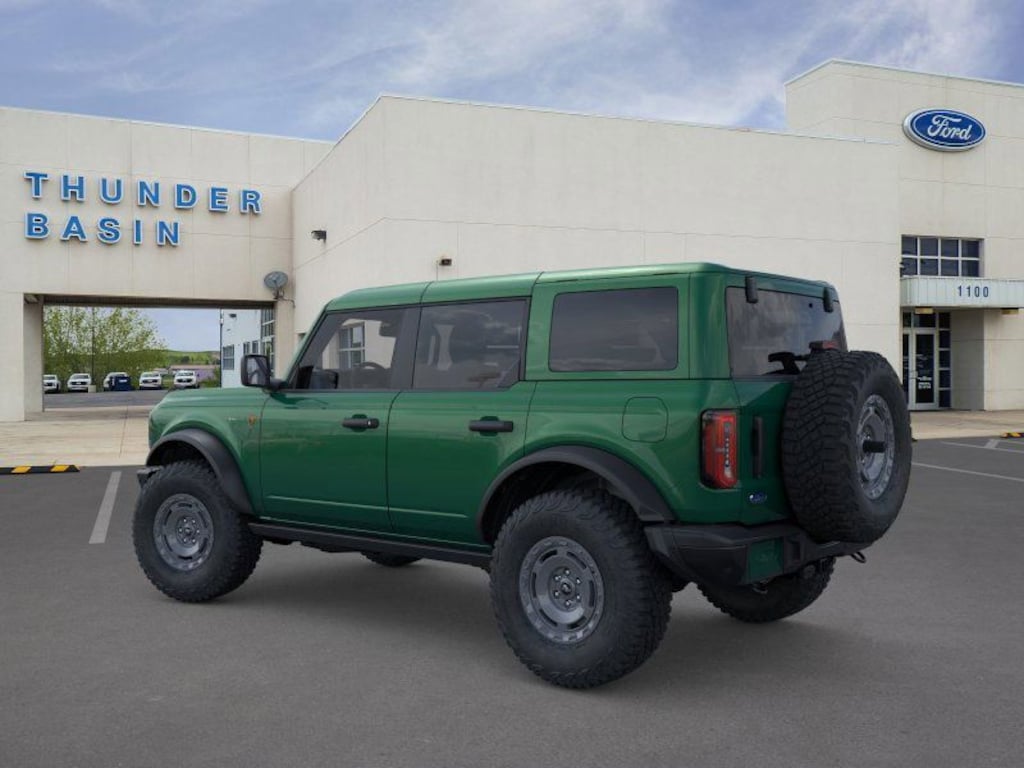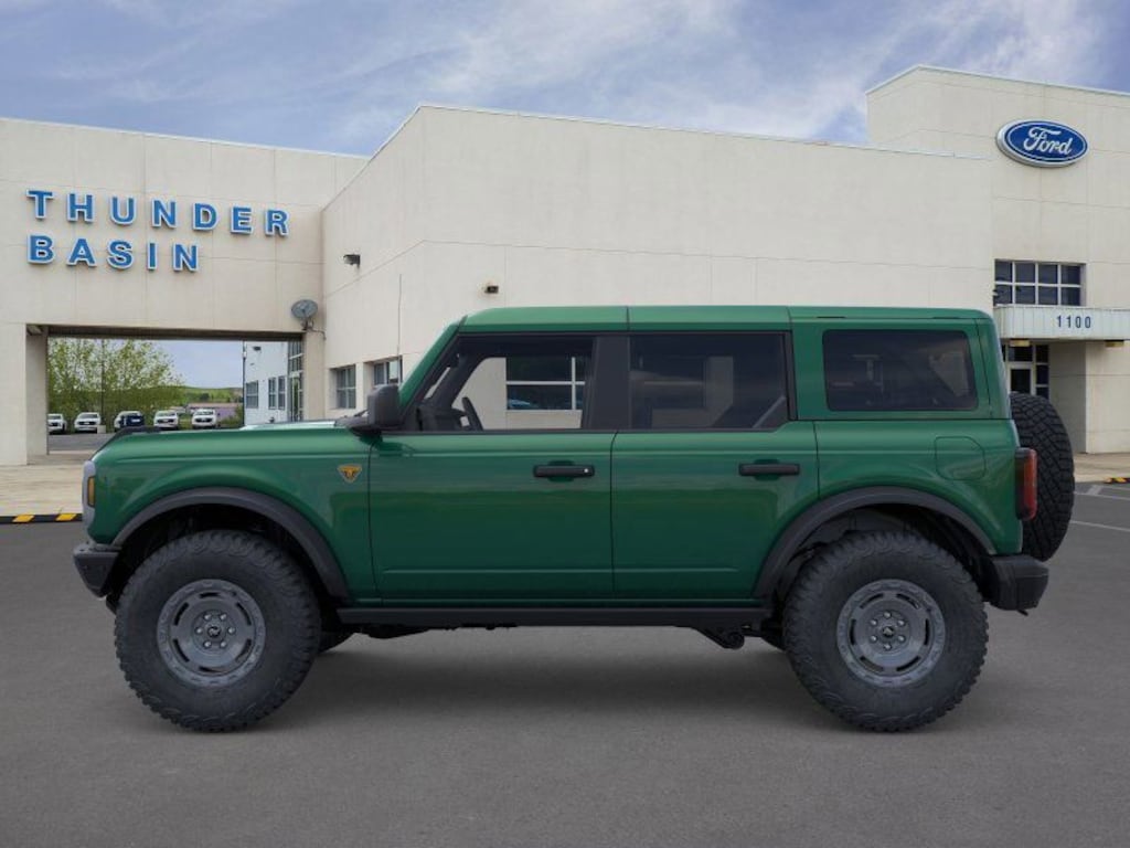 Eruption Green Metallic 2025 Ford Bronco Badlands 4WD 10-Speed Automatic 2.7L EcoBoost V6 2-Door Intelligent Access w/Lock/Unlock, 4-Wheel Disc Brakes, 7 Speakers, ABS brakes, Air Conditioning, Alloy wheels, AM/FM radio: SiriusXM with 360L, AM/FM Stereo, Ambient Footwell Lighting, Auto High-Beam Headlamps, Auto High-beam Headlights, Auto-dimming Rear-View mirror, BLIS Blind Spot Information System, Body Color-Painted Hard Top, Brake assist, Compass, Connected Navigation, Delay-off headlights, Door Storage Bags, Dr & Pass Illuminated Sliding Visor Vanity Mirrors, Driver door bin, Driver vanity mirror, Dual front impact airbags, Dual front side impact airbags, Dual Smart Charging USB Ports, Dual-Zone Electronic Automatic Temperature Control, Electronic Stability Control, Emergency communication system: 911 Assist, Engine Block Heater, Equipment Group 332A Mid Package, Exterior Parking Camera Rear, Ford Performance Heavy-Duty Modular Front Bumper, Front & Rear Floor Liners, Front anti-roll bar, Front Bucket Seats, Front Center Armrest, Front fog lights, Front License Plate Bracket, Front reading lights, Front Row Heated Seats, Front wheel independent suspension, Fully automatic headlights, Hard Top Sound Deadening Headliner, Heated door mirrors, Heated front seats, Heated steering wheel, High Clearance Fender Flares, High Clearance Suspension, Illuminated entry, Integrated roll-over protection, Lane-Keeping System, Leather Shift Knob, Leather-Trimmed/Vinyl Bucket Seats, Low tire pressure warning, Marine Grade Vinyl Heated Bucket Seats, Occupant sensing airbag, Outside temperature display, Overhead airbag, Overhead console, Panic alarm, Passenger door bin, Passenger vanity mirror, Position-Sensitive Bilstein Shock Absorbers, Power door mirrors, Power Outlet - Back Side of Center Floor Console, Power steering, Power windows, Pre-Collision Assist w/Automatic Emergency Braking, Radio data system, Rear Parking Sensors, Rear-View Camera, Rear-Window Defroster & Washer, Remote keyless entry, Sasquatch Package, Security system, SiriusXM w/360L, Speed control, Split folding rear seat, Steering wheel mounted audio controls, SYNC 4, Tachometer, Telescoping steering wheel, Tilt steering wheel, Traction control, Trip computer, Variably intermittent wipers, Voltmeter, Wheels: 17" Carbonized Gray Painted Aluminum, Wheels: 17" Carbonized Gray-Painted Aluminum.