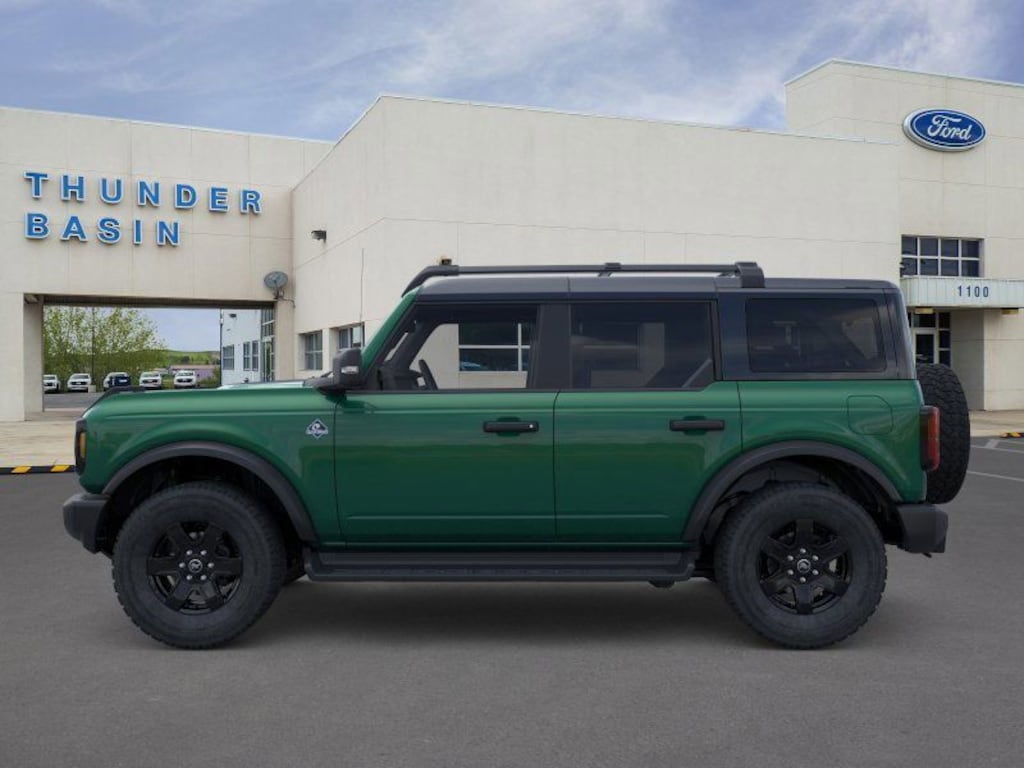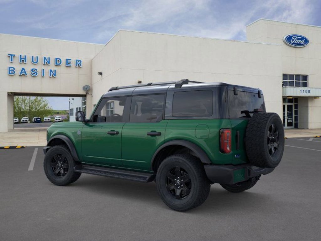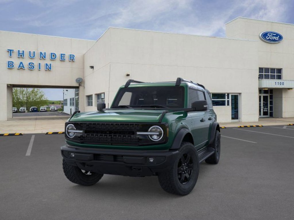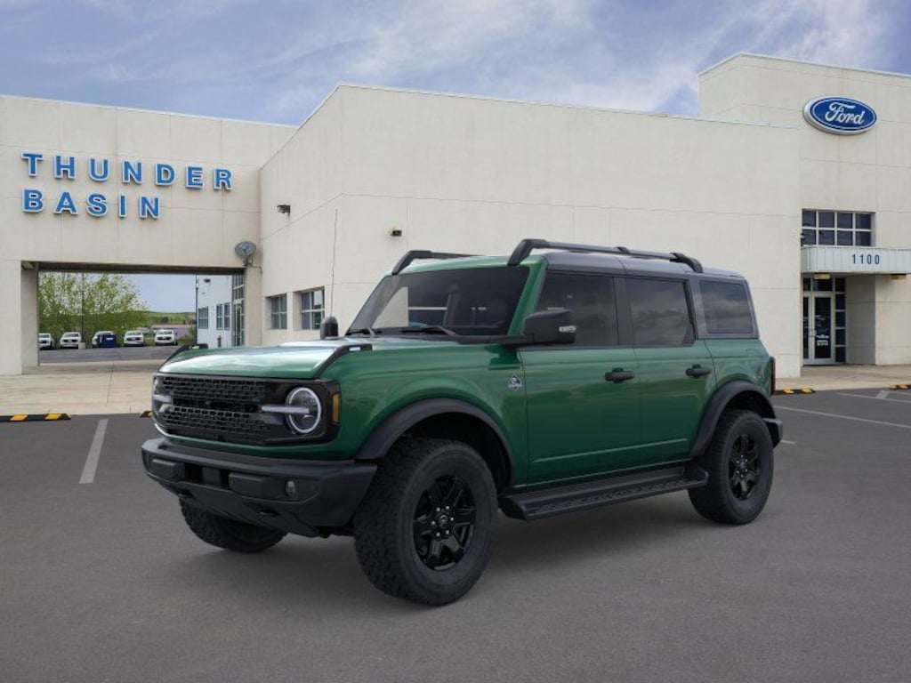 Eruption Green Metallic 2025 Ford Bronco Outer Banks 4WD 10-Speed Automatic 2.3L EcoBoost I-4 18" Bright Machined Aluminum Wheels, 3.73 Axle Ratio, 4-Wheel Disc Brakes, 7 Speakers, ABS brakes, Air Conditioning, Alloy wheels, AM/FM radio: SiriusXM with 360L, AM/FM Stereo, Auto High-beam Headlights, Auto-dimming Rear-View mirror, Automatic temperature control, Black Appearance Package, Black Molded-In-Color Door Handles, Black Molded-In-Color Fender Flares, Black Molded-In-Color Sideview Mirror Caps, Black Roof Rails w/Crossbars, Black-Painted Molded-In-Color Grille, Brake assist, Compass, Connected Navigation, Delay-off headlights, Door Storage Bags, Driver door bin, Driver vanity mirror, Dual front impact airbags, Dual front side impact airbags, Electronic Stability Control, Emergency communication system: 911 Assist, Equipment Group 312A Mid Package, Exterior Parking Camera Rear, Front & Rear Floor Liners w/o Carpet Floor Mats, Front anti-roll bar, Front Bucket Seats, Front Center Armrest, Front dual zone A/C, Front fog lights, Front reading lights, Front wheel independent suspension, Fully automatic headlights, Hard Top Sound Deadening Headliner, Heated door mirrors, Heated front seats, Heated Leather-Trimmed/Vinyl Bucket Seats, Heated steering wheel, Illuminated entry, Integrated roll-over protection, Leather Shift Knob, Low tire pressure warning, Navigation system: Connected Navigation, Occupant sensing airbag, Outside temperature display, Overhead airbag, Overhead console, Panic alarm, Passenger door bin, Passenger vanity mirror, Power door mirrors, Power driver seat, Power passenger seat, Power steering, Power windows, Radio data system, Rear seat center armrest, Rear-Window Defroster & Washer, Remote keyless entry, Security system, Shadow Black-Painted Hard Top, SiriusXM w/360L, Speed control, Split folding rear seat, Steering wheel mounted audio controls, SYNC 4, Tachometer, Telescoping steering wheel, Tilt steering wheel, Traction control, Trip computer, Variably intermittent wipers, Voltmeter.
