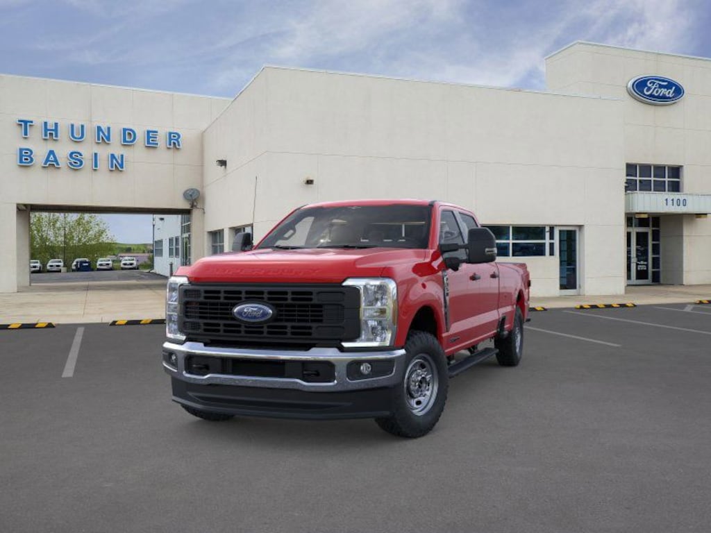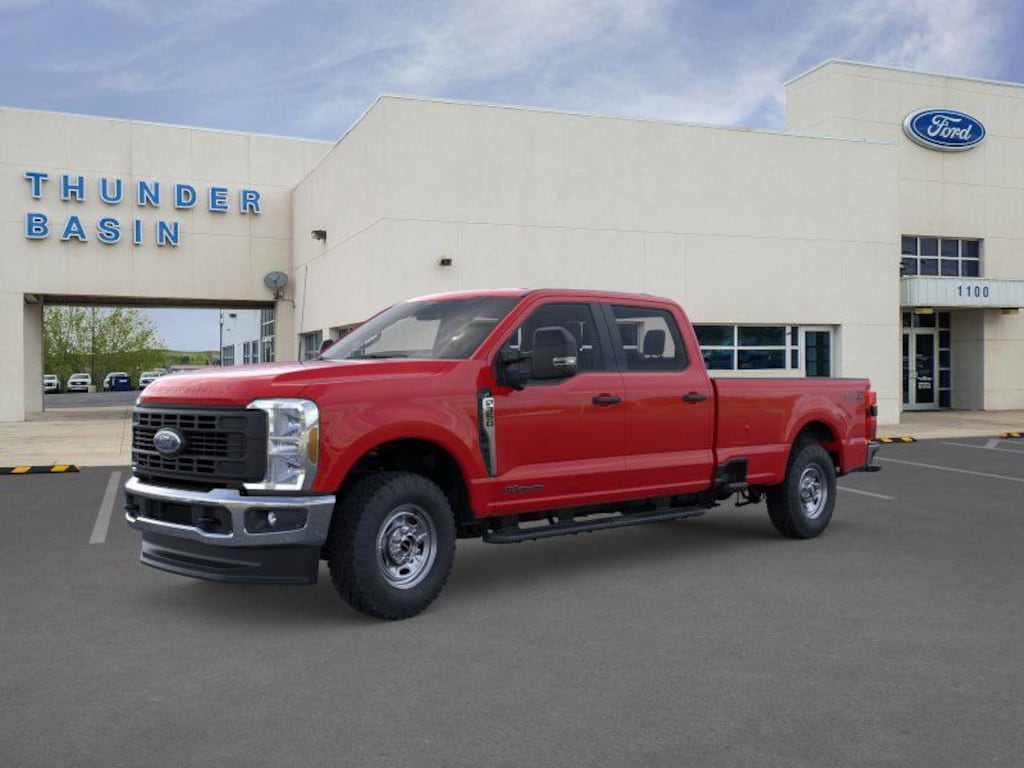 Race Red 2025 Ford F-350SD XL 4WD 10-Speed Automatic Power Stroke 6.7L V8 DI 32V OHV Turbodiesel 4WD, 360-Degree Camera, 360-Degree Camera Package, BLIS w/Cross-Traffic Alert, Bright Chrome Hub Covers & Center Ornaments, Chrome Front Bumper, Chrome Rear Step Bumper, FX4 Off-Road Package, Halogen Fog Lamps, Hill Descent Control, LED Center High-Mounted Stop Lamp (CHMSL) Camera, Off-Road Specifically Tuned Shock Absorbers, Rear Parking Sensors, Unique FX4 Off-Road Box Decal, XL Chrome Package, XL Driver Assist Package, XL Off-Road Package, 120V/400W Outlet, 17" Argent Painted Steel Wheels, 3.73 Axle Ratio, 4-Wheel Disc Brakes, 410 Amp Dual Alternators, 6 Speakers, ABS brakes, Air Conditioning, AM/FM radio, AM/FM Stereo w/MP3 Player, Brake assist, Cloth 40/20/40 Split Bench Seat, Compass, Delay-off headlights, Dual AGM 68 AH Battery, Dual front impact airbags, Dual front side impact airbags, Electronic Stability Control, Electronic-Locking w/3.55 Axle Ratio, Emergency communication system: SYNC 4 911 Assist, Engine Block Heater, Exterior Parking Camera Rear, Front anti-roll bar, Front Center Armrest w/Storage, Front License Plate Bracket, Front reading lights, Fully automatic headlights, HD Vinyl 40/20/40 Split Bench Seat, Heated door mirrors, Illuminated entry, Low tire pressure warning, Order Code 610A, Outside temperature display, Overhead airbag, Overhead console, Panic alarm, Passenger vanity mirror, Platform Running Boards, Power door mirrors, Power steering, Power windows, Rear reading lights, Rear step bumper, Remote keyless entry, Security system, Speed control, Split folding rear seat, Steering wheel mounted audio controls, SYNC 4, Tachometer, Telescoping steering wheel, Tilt steering wheel, Traction control, Trip computer, Turn signal indicator mirrors, Upfitter Switches (6), Variably intermittent wipers, 4WD, 360-Degree Camera, 360-Degree Camera Package, BLIS w/Cross-Traffic Alert, Bright Chrome Hub Covers & Center Ornaments, Chrome Front Bumper, Chrome Rear Step Bumper, FX4 Off-Road Package, Halogen Fog Lamps, Hill Descent Control, LED Center High-Mounted Stop Lamp (CHMSL) Camera, Off-Road Specifically Tuned Shock Absorbers, Rear Parking Sensors, Unique FX4 Off-Road Box Decal, XL Chrome Package, XL Driver Assist Package, XL Off-Road Package.
