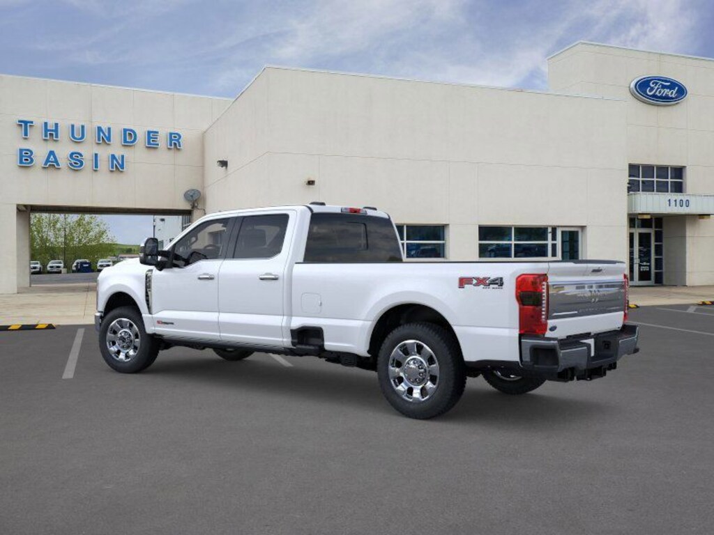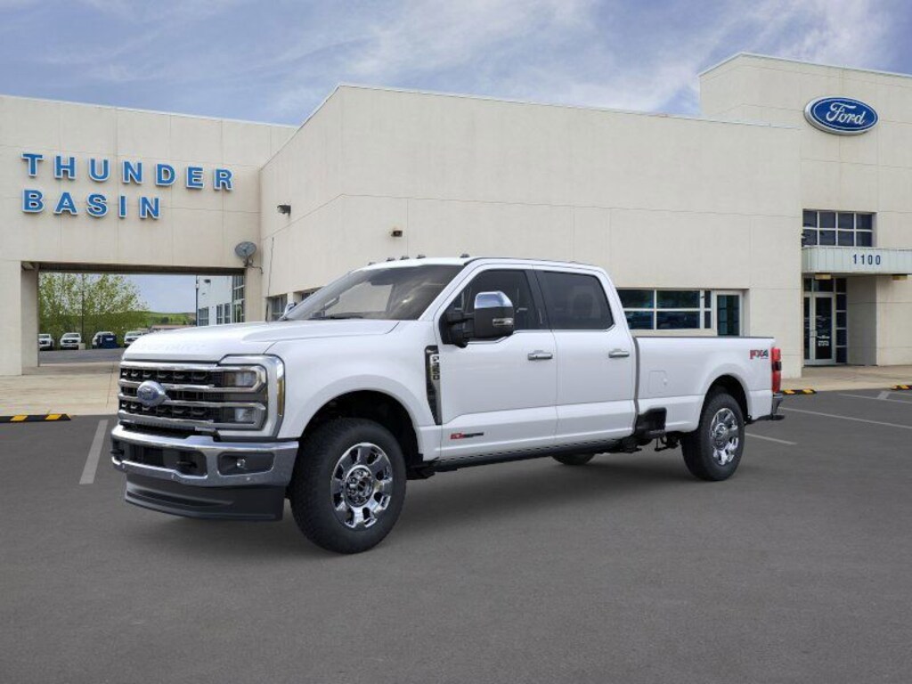 White 2026 Ford F-350SD King Ranch 4WD 10-Speed Automatic 6.7L High Output Power Stroke V8 Diesel 4WD, 14 Speakers, 4-Wheel Disc Brakes, ABS brakes, Adjustable pedals, Air Conditioning, Alloy wheels, AM/FM radio: SiriusXM with 360L, Auto High-beam Headlights, Auto tilt-away steering wheel, Auto-dimming Rear-View mirror, Automatic temperature control, Brake assist, Compass, Delay-off headlights, Driver door bin, Driver vanity mirror, Dual front impact airbags, Dual front side impact airbags, Electronic Stability Control, Electronic-Locking w/3.73 Axle Ratio, Emergency communication system: SYNC 4 911 Assist, Flow-Through Console, Ford Connectivity Package (1-Year Included), Front anti-roll bar, Front Bucket Seats, Front Center Armrest, Front dual zone A/C, Front fog lights, Front reading lights, Fully automatic headlights, Garage door transmitter, Heads-Up Display, Heated door mirrors, Heated front seats, Heated rear seats, Heated steering wheel, Illuminated entry, Internet access capable: 5G Modem - Ford Connectivity Package, Leather steering wheel, Low tire pressure warning, Memory seat, Navigation system: Connected Navigation, Outside temperature display, Overhead airbag, Overhead console, Panic alarm, Passenger door bin, Passenger vanity mirror, Pedal memory, Power door mirrors, Power driver seat, Power passenger seat, Power steering, Power windows, Radio: B&O Unleashed Sound System by Bang & Olufsen, Rain sensing wipers, Rear reading lights, Rear seat center armrest, Rear step bumper, Rear window defroster, Remote keyless entry, Security system, SiriusXM w/360L, Speed control, Split folding rear seat, Steering wheel memory, Steering wheel mounted A/C controls, Steering wheel mounted audio controls, SYNC 4 w/Enhanced Voice Recognition, Tachometer, Telescoping steering wheel, Tilt steering wheel, Traction control, Trip computer, Turn signal indicator mirrors, Unique King Ranch Leather 40/Console/40 Seats, Variably intermittent wipers, Ventilated front seats, Wheels: 20" Bright Machined Aluminum, 4WD.