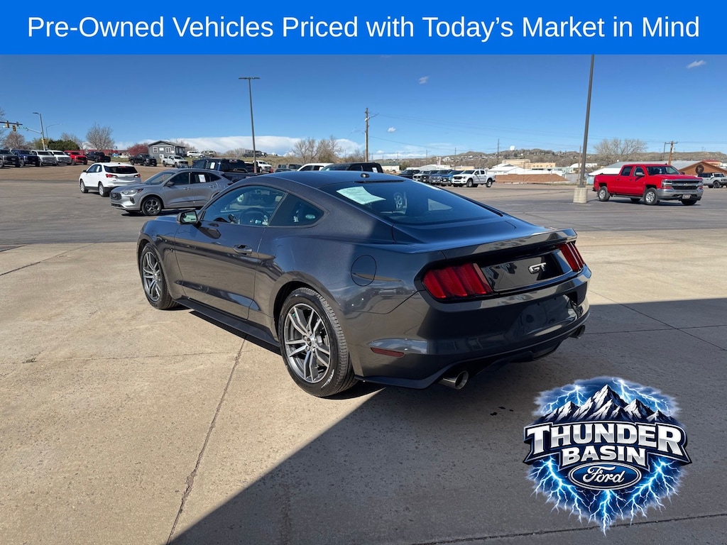 The sleek, athletic exterior of this Mustang is finished in a sophisticated Gray hue, complemented by a range of premium features that elevate the driving experience. High-Intensity Discharge headlights provide exceptional illumination, while the rear spoiler and body-color bumpers accentuate the vehicle's dynamic profile.