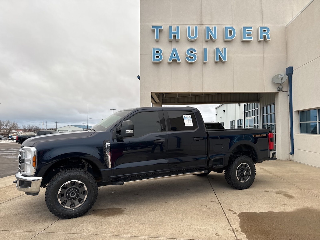 CARFAX One-Owner. Clean CARFAX. Blue Metallic 2024 Ford F-250SD XLT TREMOR 4D Crew Cab 4WD 10-Speed Automatic 7.3L V8 PFI OHV 16V Federal 430hp 4WD, 360-Degree Camera Package, 360-Degree Camera System, 4-Wheel Disc Brakes, 6 Speakers, ABS brakes, Air Conditioning, All-Weather Floor Mats, Alloy wheels, AM/FM radio, AM/FM Stereo w/MP3 Player, Auto High-beam Headlights, BLIS w/Cross-Traffic Alert, Brake assist, Bumpers: chrome, Cloth 40/20/40 Split Bench Seat, Compass, Delay-off headlights, Driver door bin, Driver vanity mirror, Dual front impact airbags, Dual front side impact airbags, Electronic Stability Control, Emergency communication system: SYNC 4 911 Assist, Engine Block Heater, Exterior Parking Camera Rear, Front anti-roll bar, Front Center Armrest w/Storage, Front fog lights, Front License Plate Bracket, Front reading lights, Fully automatic headlights, GVWR: 10,000 lb Payload Package, Heated door mirrors, Illuminated entry, LED Center High-Mounted Stop Lamp (CHMSL) Camera, Low tire pressure warning, Order Code 603A, Outside temperature display, Overhead airbag, Overhead console, Panic alarm, Passenger door bin, Passenger vanity mirror, Power door mirrors, Power driver seat, Power steering, Power windows, Privacy Glass, Rear Parking Sensors, Rear reading lights, Rear step bumper, Remote keyless entry, Speed control, Split folding rear seat, Steering wheel mounted audio controls, SYNC 4, Tachometer, Telescoping steering wheel, Tilt steering wheel, Tough Bed Spray-In Bedliner, Traction control, Trip computer, Turn signal indicator mirrors, Variably intermittent wipers, Wheels: 18" Sparkle Silver Painted Cast Aluminum, 4WD.
